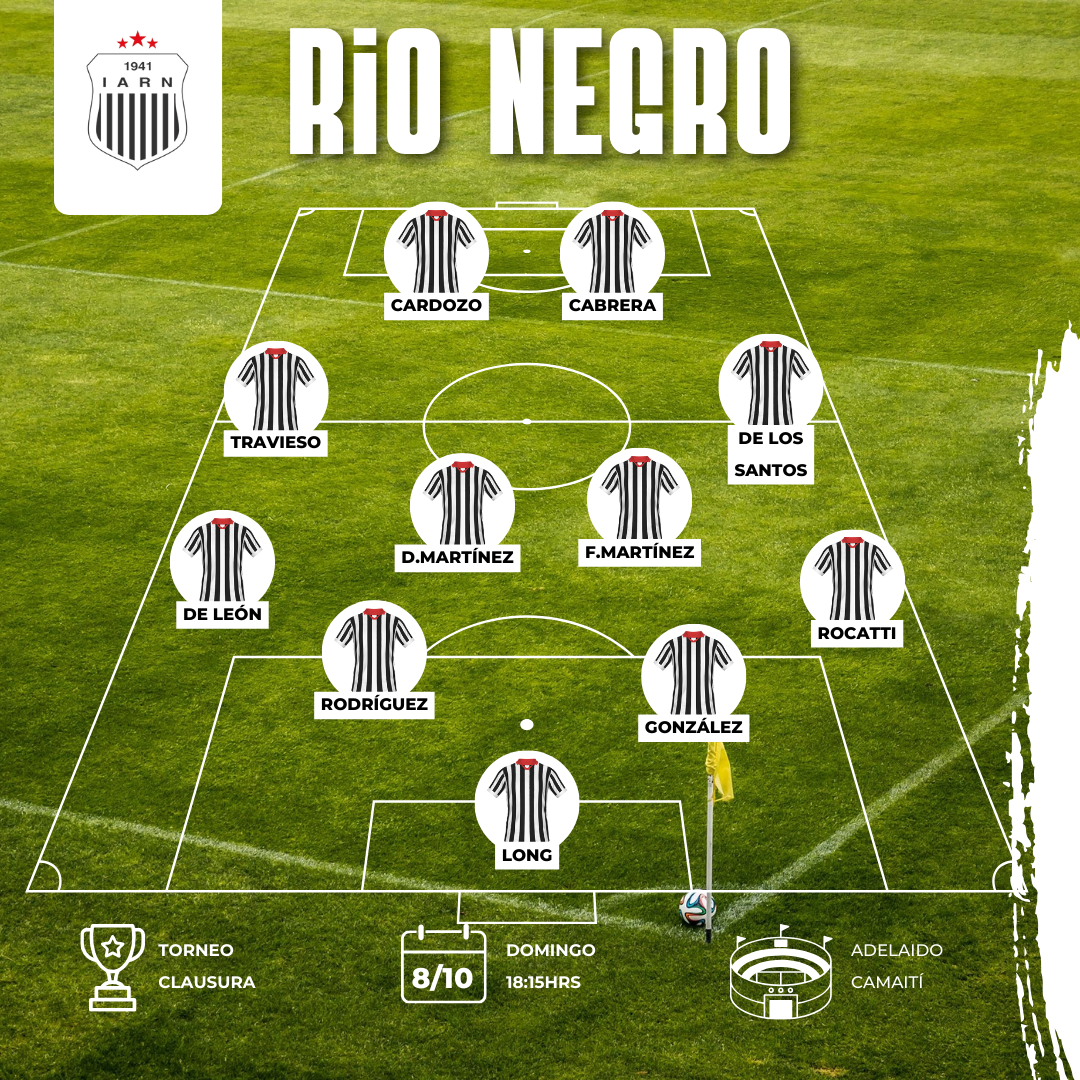 Rio Negro: Augusto Camejo tiene las bajas de Rodrigo De León y Manuel Placeres, ambos por lesión. Recupera a Tian Lucas Val, que cumplió con el partido de pena y seguramente pueda ser unas de las novedades en el once titular. Val por temas de estudios está teniendo algunas dificultades para entrenar con normalidad. Habrá que ver si en definitiva mete o no mano Camejo en el 11.