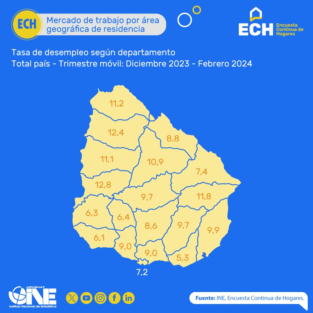 Luego de cuatro trimestres consecutivos en crecimiento, el desempleo se mantuvo estable en San José y, de acuerdo a lo informado este jueves por el Instituto Nacional de Estadísticas (INE), en el trimestre diciembre 2023-febrero 2024 fue del 9%, al igual que el período comprendido entre noviembre y enero.