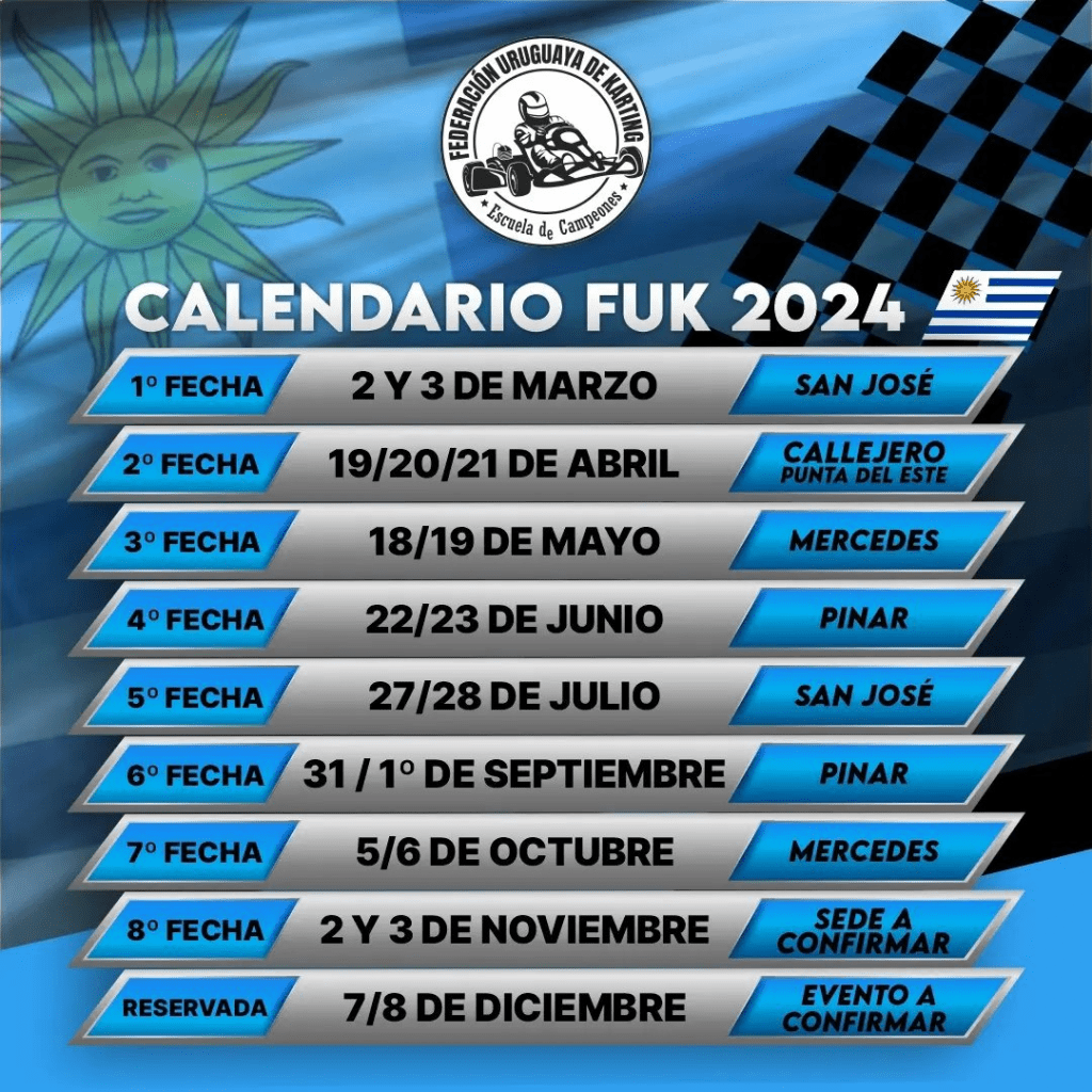 Todas ellas serán transmitidas en directo por Canal 5, y los canales de la Federación Uruguaya de Karting en Youtube y Facebook.